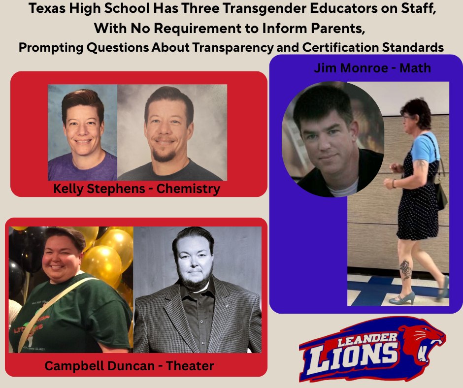 Leander ISD websites, according to Bone, list teachers with preferred names, photos, and sometimes pronouns, but there is no indication if these match their legal names or biological sex on official Texas teaching certifications.