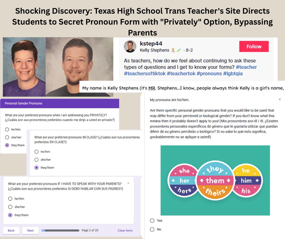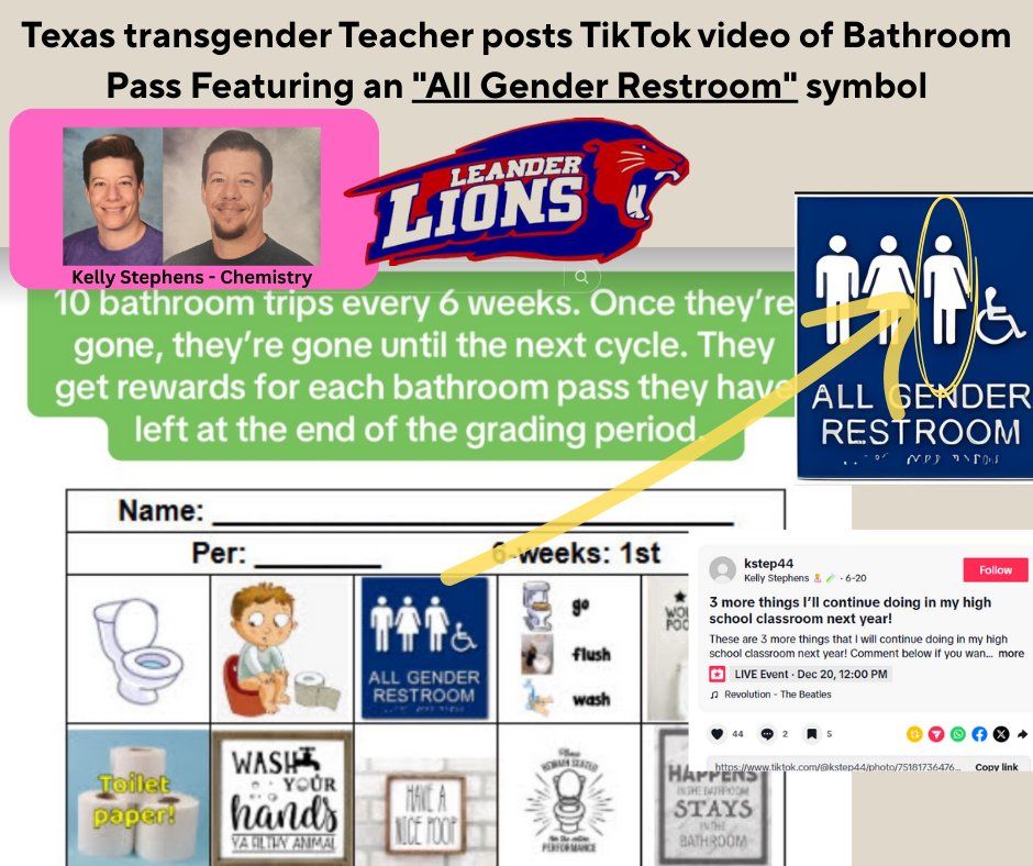 - Kelly Stephens (Chemistry teacher, allegdly a biological woman posing as a man, known to instruct students on how to pronounce his name and to refer to him as “Mr. Stephens”),