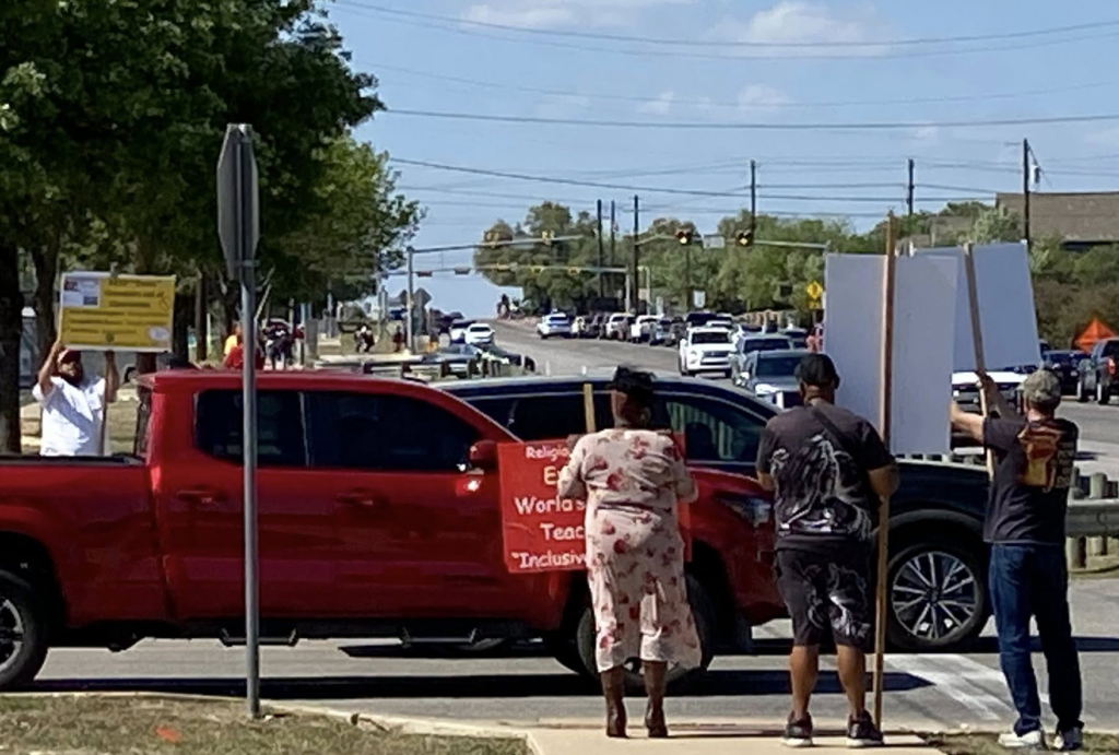 Protesters, when spoken to, reported some thumbs up and vocal affirmations, though opposition was noticeably louder. Protesters said they were from local churches, plus a couple of Leander ISD parents, but wished not to be identified.